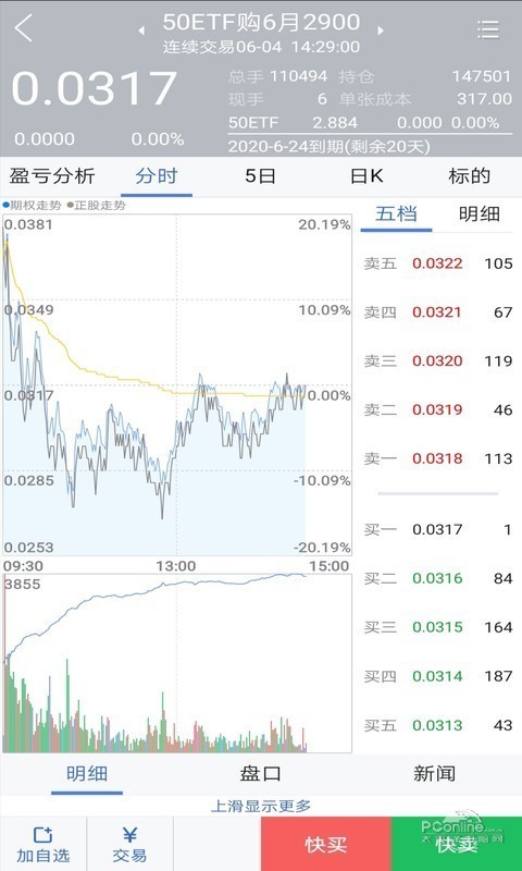 (3)多处交易细节设计,确保交易顺畅,包括下单页面快速切换上下两档期权,快速微调价格和数量,撤单时可选择撤买、撤卖、全撤,快捷反手,自动拆单,多种下单面板风格自由选择等.