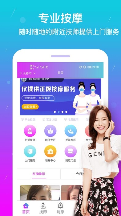2、专业技师:平台认证技师手艺精湛,让您每分钟都能享受,带给你最专业的按摩体验。
