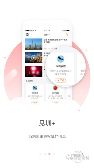 深圳新闻网见圳客户端,是深圳城市门户客户端。扎根深圳这个改革开放的窗口和自主创新的沃土,见圳客户端用简洁界面,提供原创的深圳权威新闻资讯,汇聚深圳政府自媒体公号内容,拥有深圳地区最大BBS深圳论坛,提供深圳近十家主流数字报服务,是了解深圳最及时、最权威、最具公信力的移动客户端,见证改革开放奇迹,见证美好生活。 【新闻资讯】原创+聚合,聚焦深圳社会民生。【见圳号】汇聚深圳政府部门自媒体公号内容。【IN视频】基于5G应用的城市级创意视频平台。【深圳论坛】网络问政,同城交友,深圳地区最大BBS社区。【深圳各区】聚合深圳区级新闻和自媒体公号内容。【数字报】集合深圳近十家主流数字报服务。