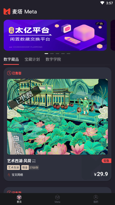 麦塔APP特点1、麦塔以数字藏品为核心,是版权数字藏品综合服务平台,面向数字文化产业。