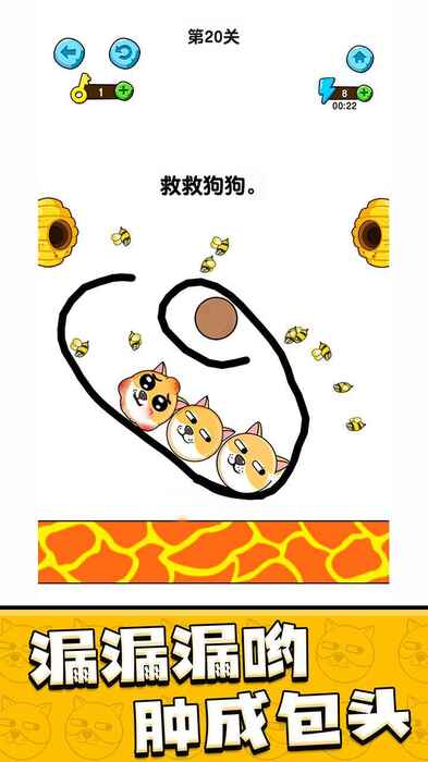 2.没有特定的游戏按钮,没有局限性,只需用手指画出任何直线曲线甚至形状,让狗不被蜜蜂蛰。