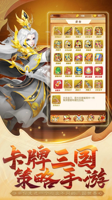 3、神将觉醒,刷副本,提升等级,升级技能和装备,走上三国巅峰。