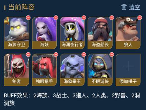 4.阵容缺乏控制,我们可以选择增加海啸追猎者(潮汐).海妖(娜迦).海盗船长等控制卡。