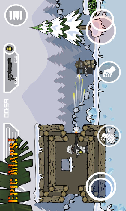 3、手绘水平射击游戏。支持本地WiFi战斗,卡通风格,重视团队战斗。