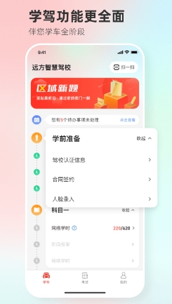 3. 方便的在线预约服务:学员可通过远方学车app预约班车和驾驶教练,还能在线查询自己的学习进度和成绩,方便快捷。
