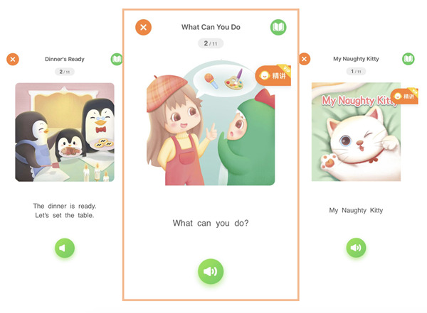 2.大卫熊英语上的绘本已覆盖市面上几乎所有小学版本的必学词汇,通过单词、场景对话、故事短篇等形式让孩子掌握这些词汇。