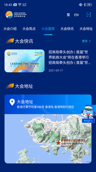 世界航商app的介绍1.世界航商官方安卓版是一款为世界航商大会打造的用户端App,提供实时查询大会信息、观看直播、参与航商直播互动等功能。