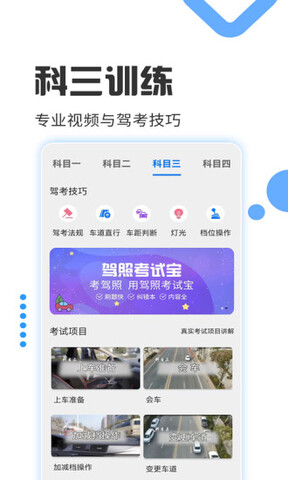 驾照考试宝app的介绍1.驾照考试宝app提供了全国各地驾照理论考试真题、驾照考试科目一、科目四题库、视频解说等多种学习资源,帮助用户更好地掌握驾考知识,提高通过率。