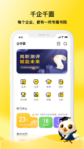 企学霸app是由北京天九共享教育科技有限公司官方发布的一款专门为职场人士提供的学习和培训平台。用户可以在企学霸中学习各种职场技能,如领导力、沟通技巧、人际关系等,还可以选择适合自己的企业内训和公开课程。企学霸app的亮点是多种学习形式,如视频、音频、课件、在线交流、电脑下载课件等等,用户可以自由选择学习方式。需要的用户快来下载体验吧。