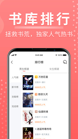 千秋悦读功能1、书城功能:提供各种小说,包括热门小说、经典小说、新书推荐、排行榜等。