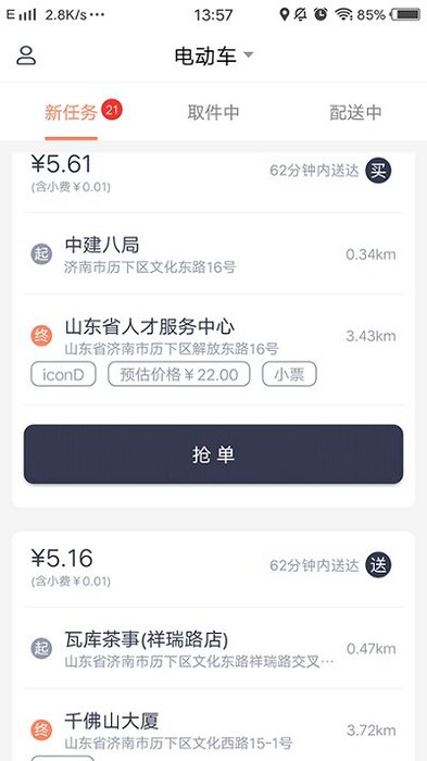 曹操送骑手app功能1.外卖配送:完成用户点单的外卖配送任务。