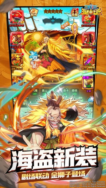 航海王强者之路免费手游介绍1、游戏中不仅可以收集和培养各种海贼角色,还可以通过装备升级、宝物搭配等方式提升角色的属性和技能。