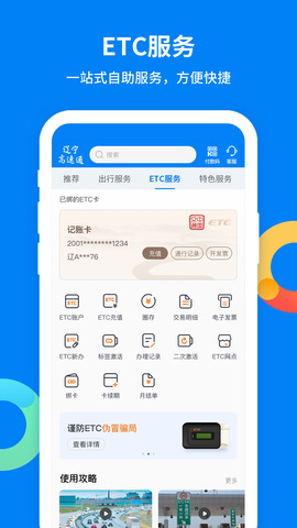 辽宁高速通etc最新版本怎么样?1.用户可以通过辽宁高速通app最新版本进行在线开通和管理ETC卡,无需到实体柜台办理,节省了时间和精力。