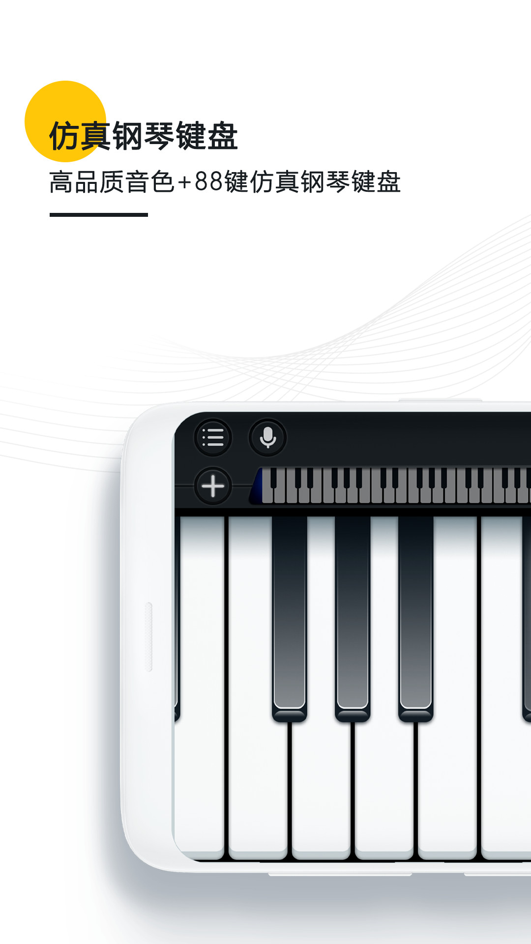【仿真按键 流畅弹奏】随身钢琴乐队提供全部钢琴琴键,选择不同区域,即可切换不同声调,高度仿真音效,带给你无与伦比的真实模拟钢琴体验!