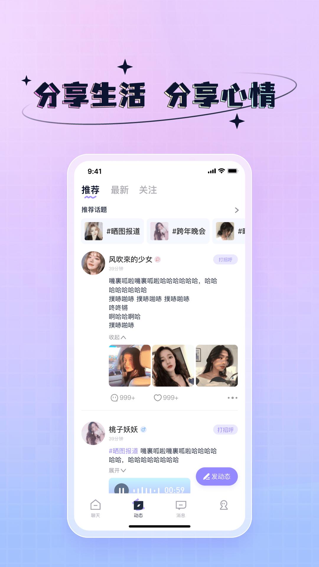 3、语音聊天,聊天室新社交,语音交友聊天约会,快速语音匹配;