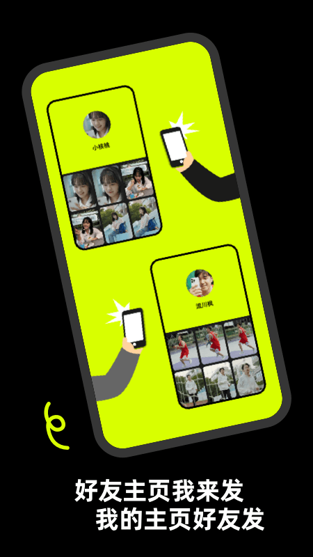 抓拍好友照片,上传到好友主页;好友抓拍我的照片,上传到我的主页。摆脱以自我为中心的社交方式,丰富与好友的线下生活真人emoji制作,无点赞数据压力,真朋友用颜艺说话好友动态,好友的另类朋友圈,主页被他人上传的内容,可即时查看。无陌生人社交压力使用场景;闺蜜聚会,互相记录精彩生活情侣日常,记录每一个甜蜜瞬间我的ab面,挖掘我眼中的自己与好友眼中自己的不同