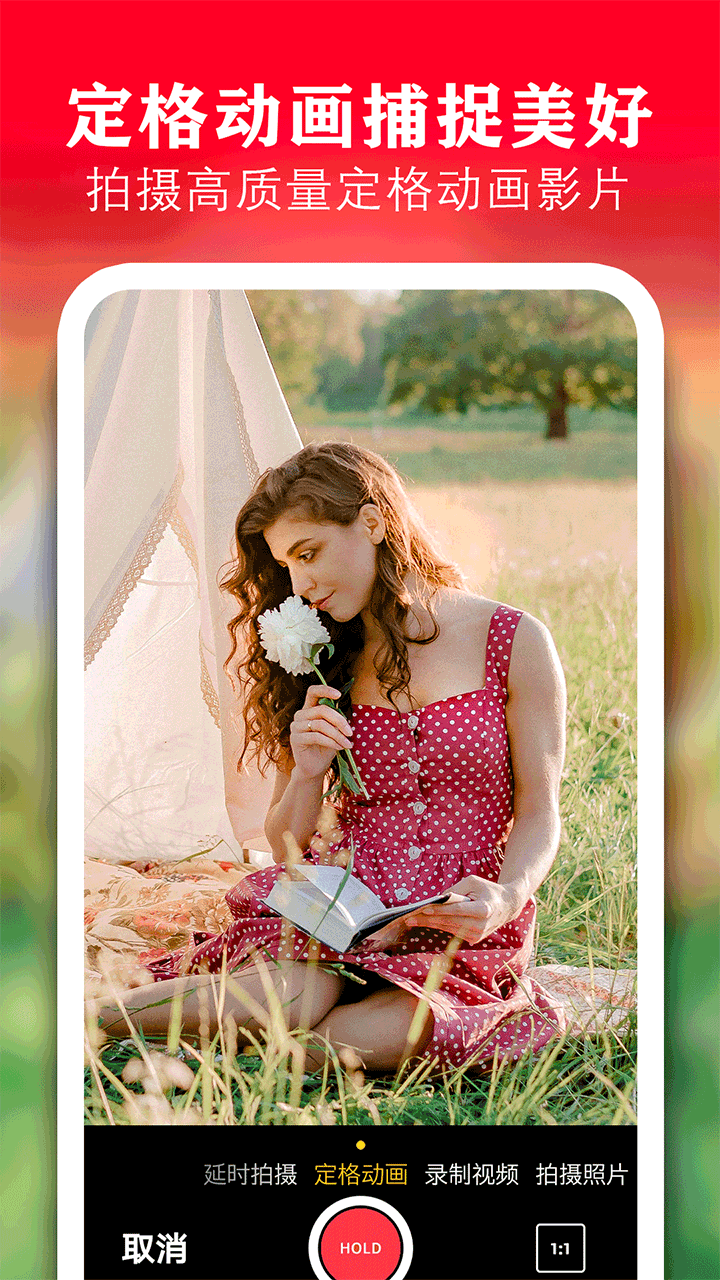 - 视频制作:一键开启录制视频、延时拍摄、定格动画、拍摄照片,视频比例可调