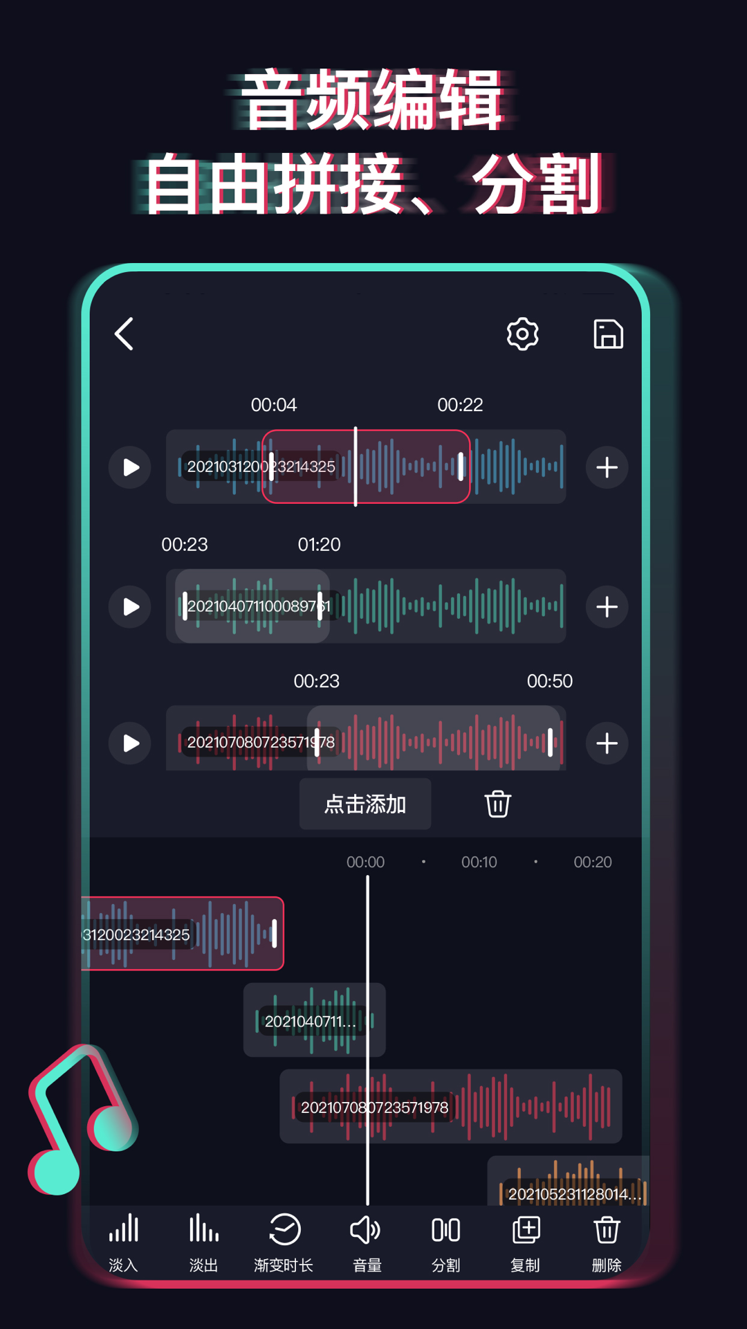 3、支持对音频进行准确裁剪、中间删除等操作。