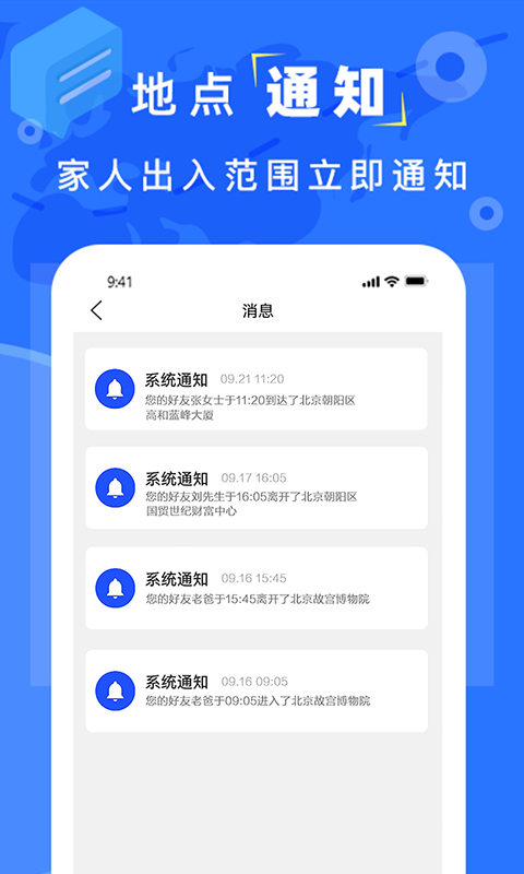 2,守护设置:设置特定位置进入离开提醒3,一键求助:一键向家人发出求助信息