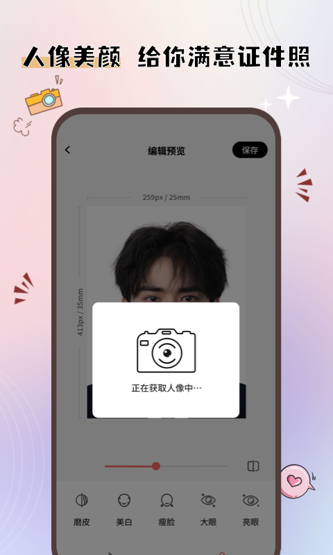 【自然美颜】 AI智能研究算法提供磨皮、美白、五官立体、瘦脸、小脸、发际线、法令纹、黑眼圈、亮眼等美颜功能。更有适合懒人、手残党的一键式化妆,人像识别满足你对自然妆、清新妆、元气妆、男神妆、女神妆的需求,支持自定义妆容程度。一键还原zui美且真实的你,打造完美、自然、高级感脸庞,告别证照不美时代。