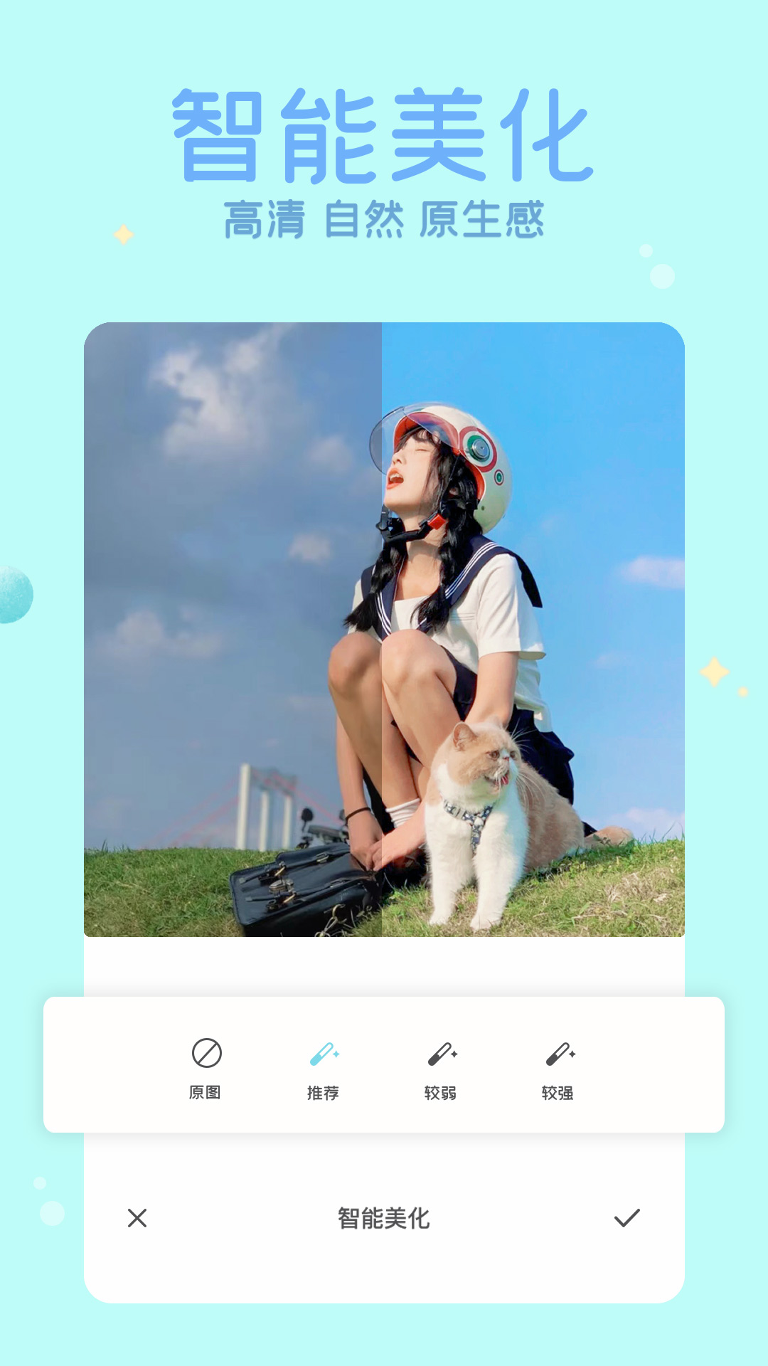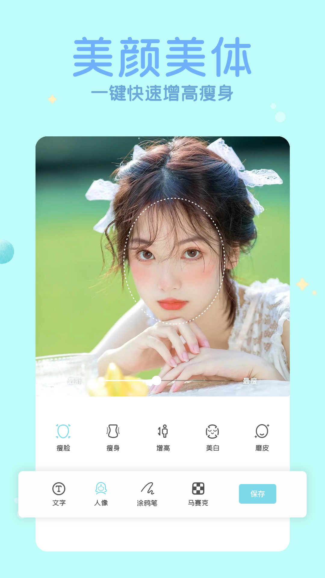 【人像美容】 一键快速增高美容,瘦脸美白,网红美女都爱用!【智能美化图片】 高清,自然,原生感,启用新的智能美化引擎,一键修出大片!