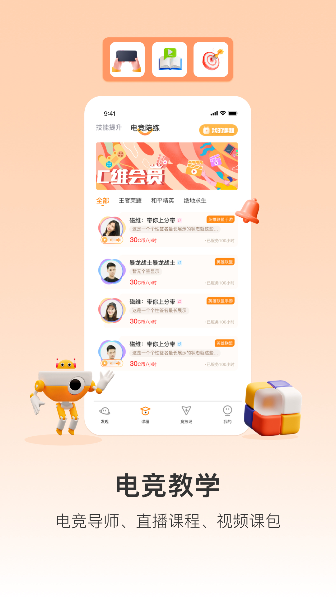 ●电竞导师:一对一教学,前职业选手、国服顶尖玩家与你实时沟通交流,根据需求定制教学内容,体验极佳!