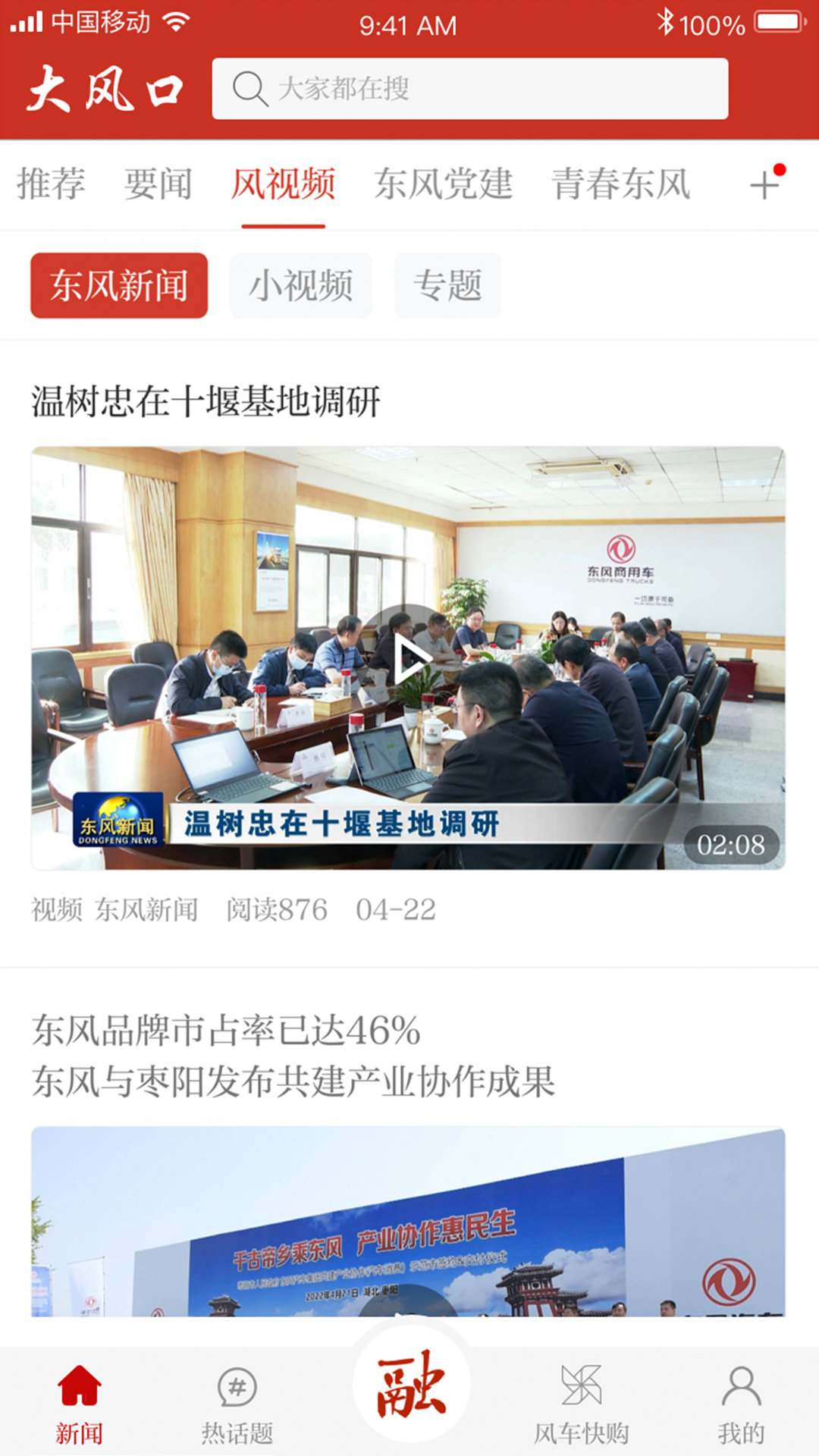 视频形式传播,这里采取了视频形式向全国的人传递东风公司新闻;