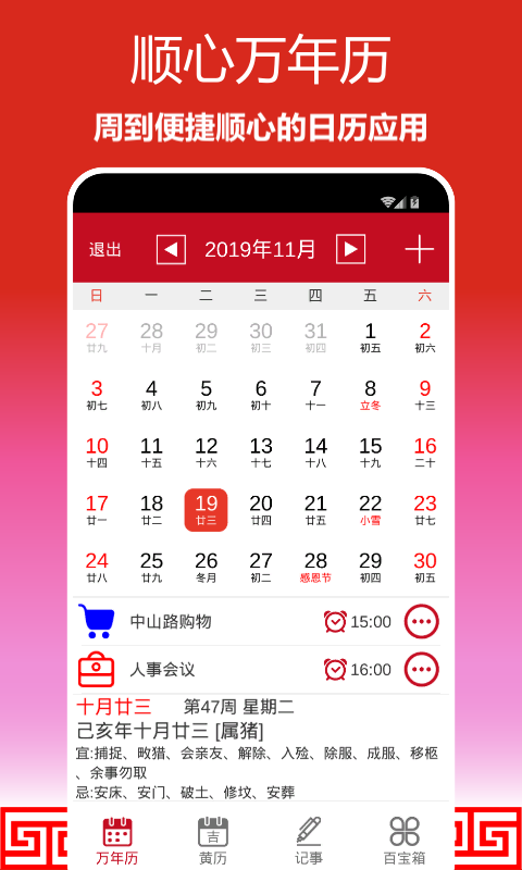 使用记事功能的快速标记和易用的时间选择交互,可以顺心记录日程,加上到时提醒功能,让你不会错过安排;