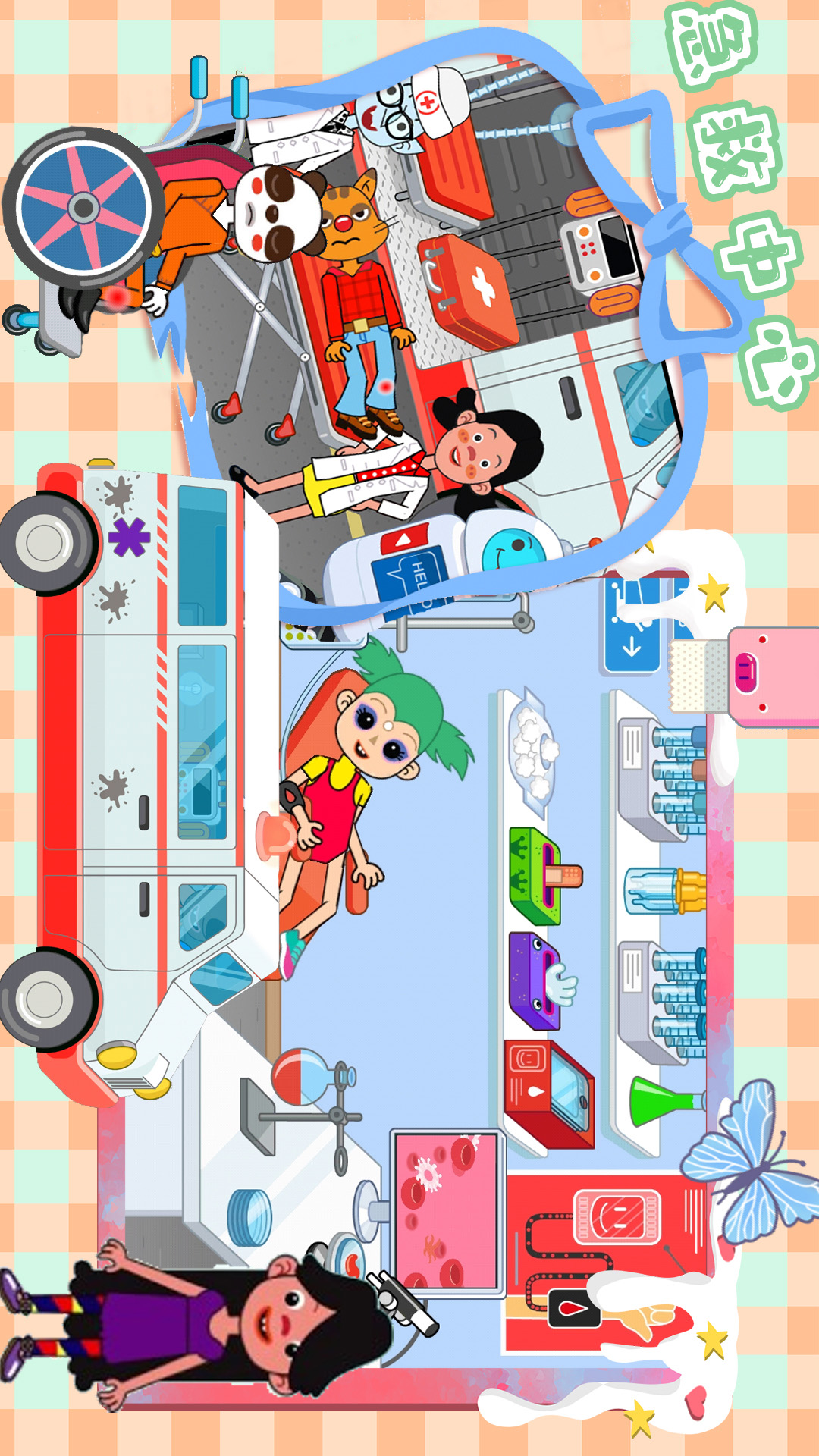 ★急诊室:救护车将会紧急送来等待救治的病人,快推上轮椅,把病人送到医院里治疗!★牙医室:可以定制舒适的牙医椅,为患者治疗牙齿。