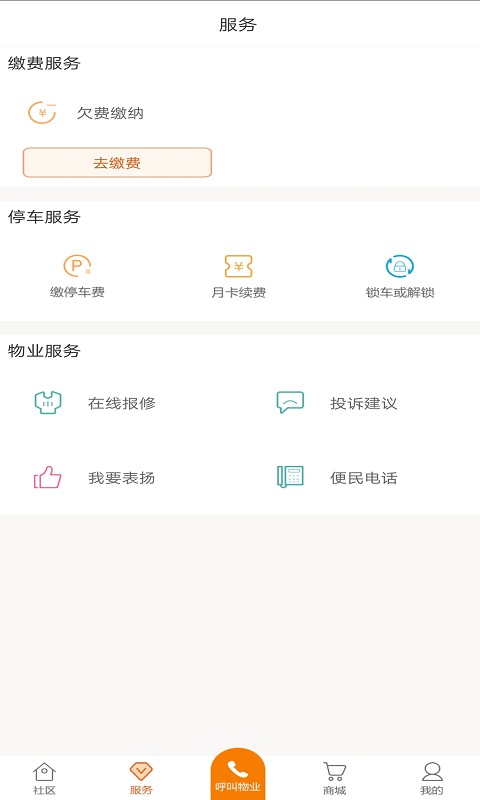 - 物业服务,提供线上物业服务平台,业主不用出门,即可获取物业服务。