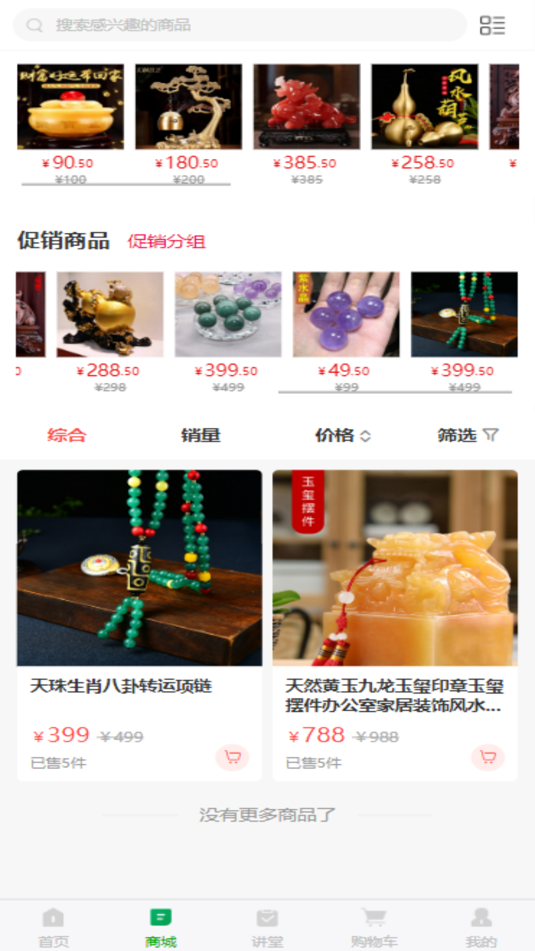 3. 拥有不同的商品种类,比如玉石类的商品,玛瑙类的商品,感兴趣的用户自由查找购买。