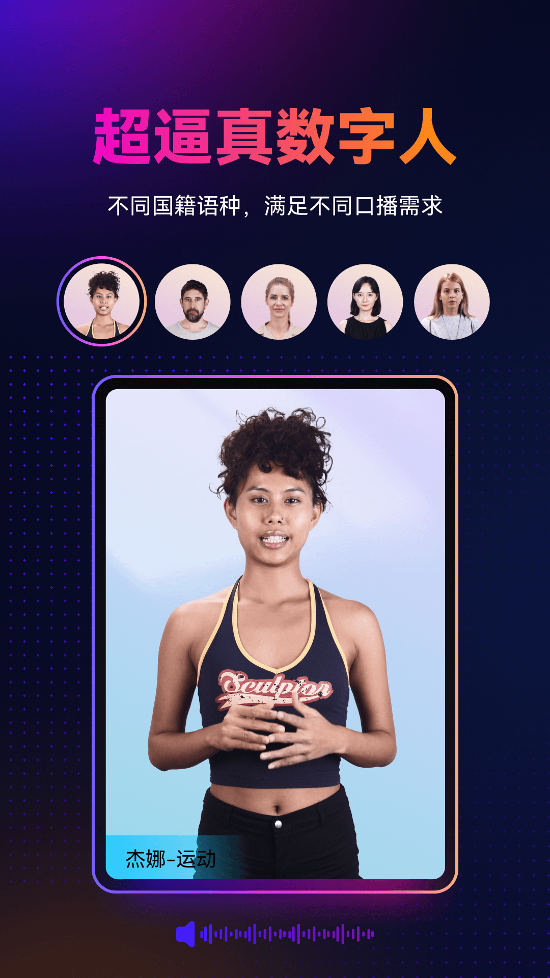 【AI数字人】超逼真数字人,满足各类口播视频超逼真技术——基于4K实拍人物深度学习生成,动作表情丰富自然,无限接近实拍效果多人物——超过50个数字人,覆盖男女、老少、中外等多人群、多肤色、多面孔多类型——从日常到商务,各类虚拟装束、职业供您选择,迎合各种播报场景【场景化模板】上百套专业级模板,覆盖不同场景需求一键套用——每套模板搭配分镜、数字人、贴纸、音乐等元素,一点即可套用,秒得专业视频场景化资源——针对营销场景、产品类型、分发渠道专门设计的创意模板资源,深度契合市场需求丰富素材——上百个贴纸素材,随心随意搭配,创作您独一无二的爆款视频