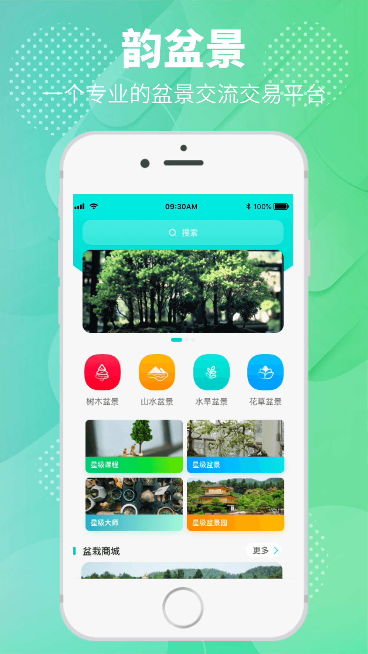 用光阴记录艺术、用积淀雕刻价值;盆景是有生命的宝石,也是有思想的宠物;她既是您的作品,也是您可信赖的陪伴。在这里,我们和您一起打理好您的盆景,让她始终生意盎然、美轮美奂;在这里,我们一起探寻开发盆景的无尽艺术;在这里,我们为每一位喜欢园艺的工作者找一份有意义的兼职;在这里,每一棵盆景都可以找到它的主人;在这里,每一点关注都可以成就一代大师。在这里,您可以为刚出生的孩子寻找一个一起陪伴成长的朋友;在这里,您可以为退休的尊者选择一个静宜的倾听伙伴;在这里,您可以为工作的烦恼积蓄再出发的动力;在这里,您可以为思想的跳跃勾勒一个成型的蓝图;在这里,您可以为自己安置一下美妙的灵魂。韵盆景用现代的管理理念、精益的艺术精神,做好您的盆景管家、提供给您合适的培训课程、保护着您盆景的健康、给与您交流的平台。财神爷站提供韵盆景app官方版下载地址,有需要的用户可免费下载使用!
