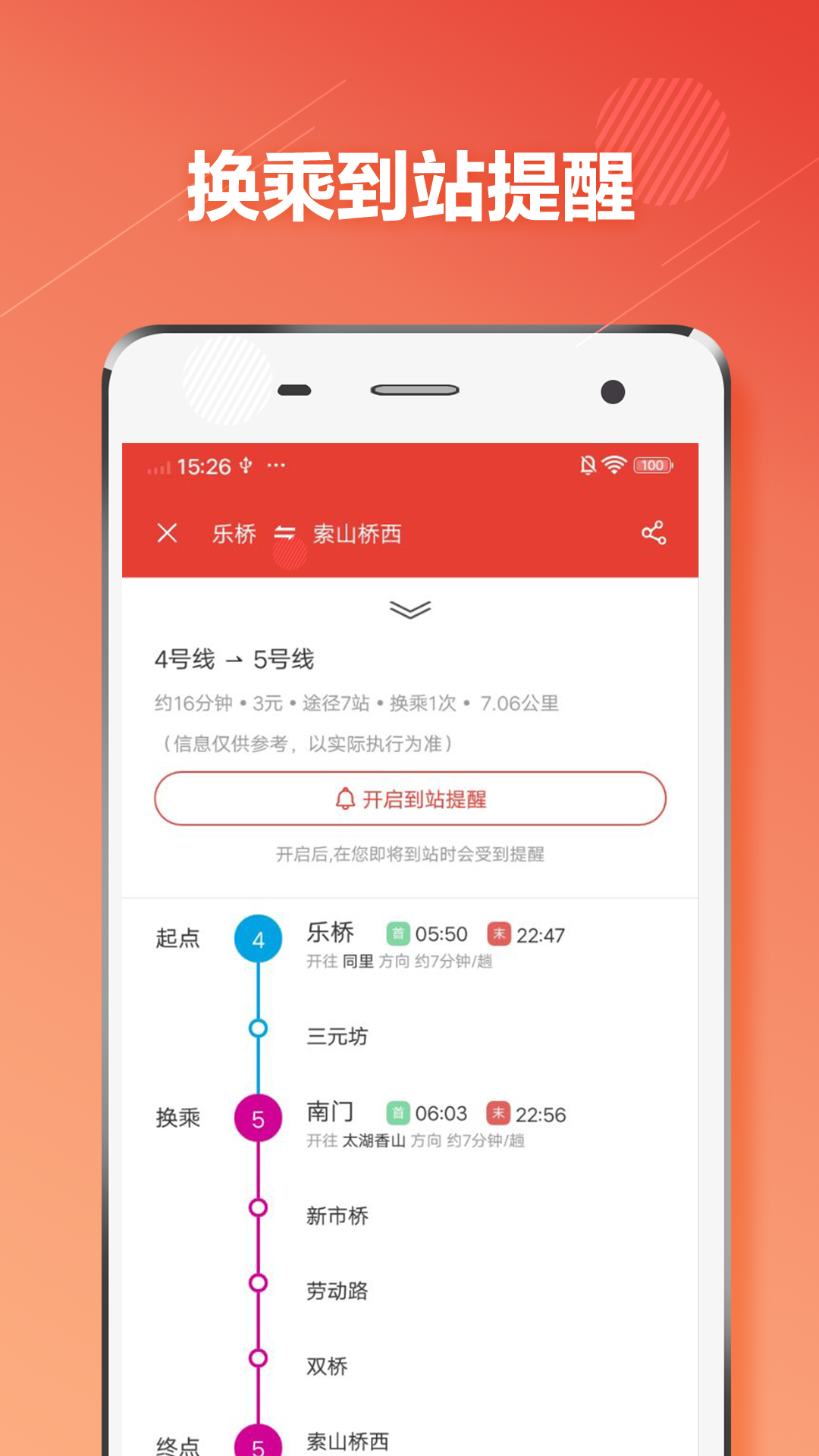3. 到站提醒 精准的实时到站提醒功能,安心玩手机,再也不用担心坐过站。