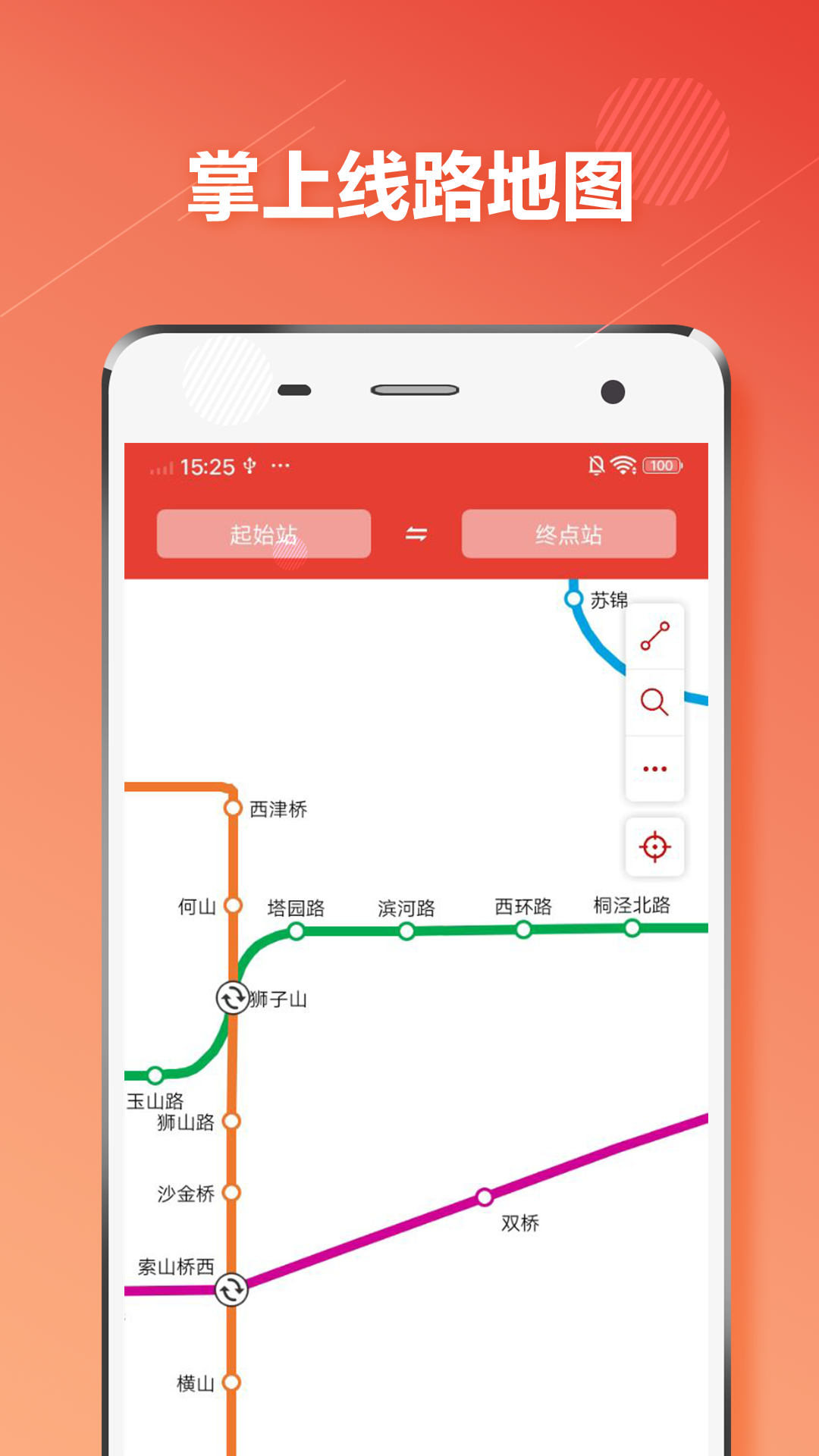 2. 路线查询 选择起终点,即可获得便捷的换乘方案。包含:路线,时间,票价,距离,只选对的。