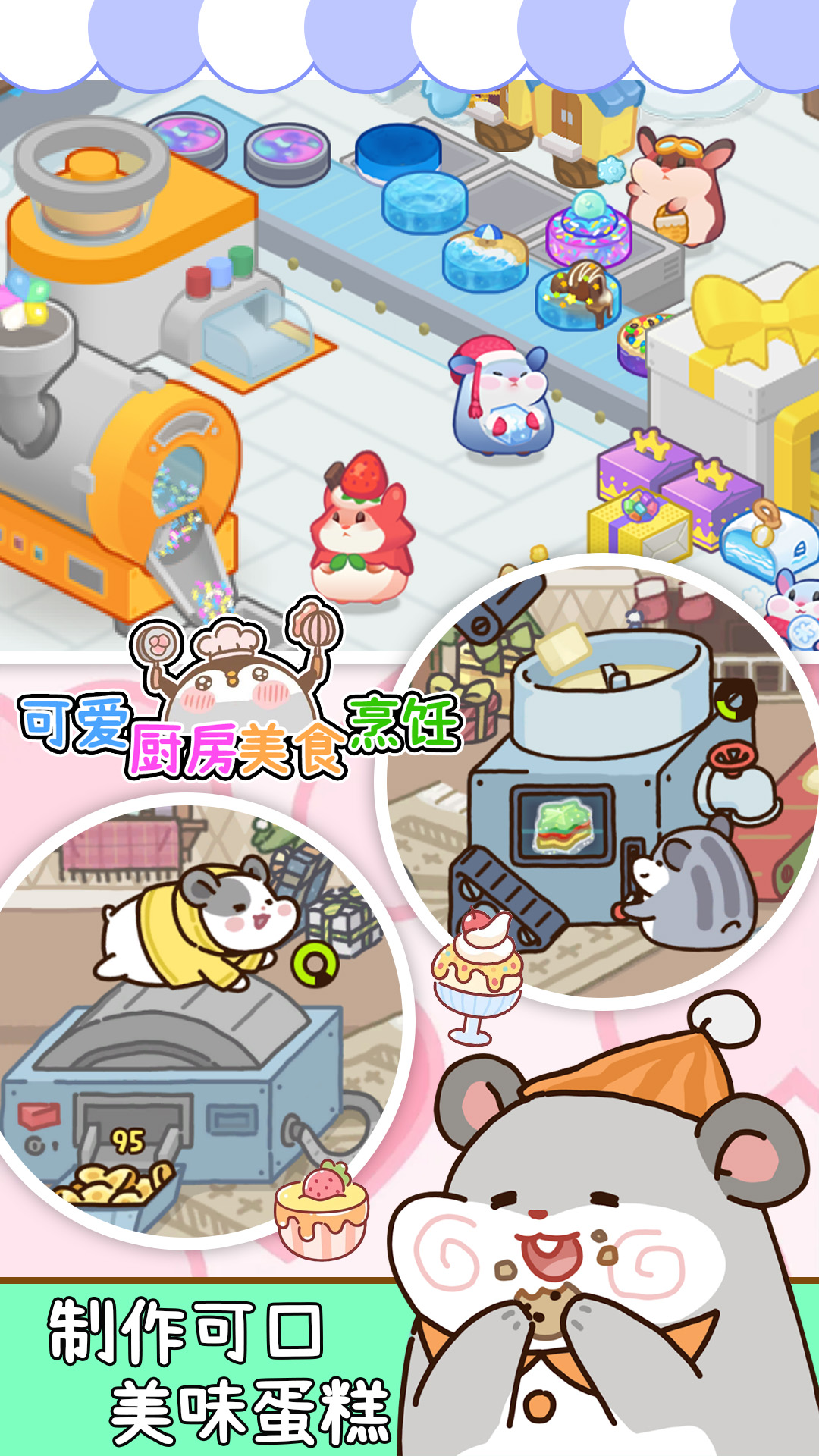 喜欢吃甜品吗?喜欢萌萌的小仓鼠吗?想要亲手制作甜品吗?可爱厨房美食烹饪帮你圆梦。搅拌面粉,加入牛奶、巧克力酱,丰富食材随心DIY,想吃什么就做什么!体验神奇厨具,打造缤纷甜点,邀请小伙伴一起品尝,学会与人分享!经营您的蛋糕工厂,使您的蛋糕机更具吸引力,雇用并提升仓鼠经理。制定投资工厂的策略-蛋糕越漂亮,价格越高!建造蛋糕生产线,增加工厂规模,并增加仓鼠。财神爷站提供可爱厨房美食烹饪app官方版下载地址,有需要的用户可免费下载使用!