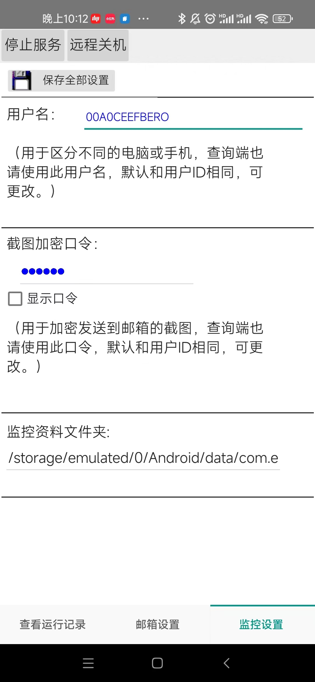 1. 【用户ID】、【截图加密密码】设置:要与电脑服务端一致,可到电脑服务端复制过来。