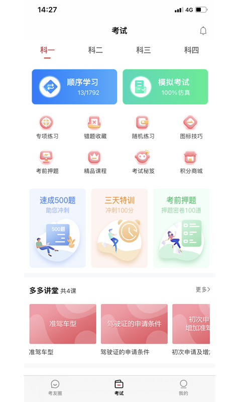 3、考前突击课程,“裸考”的福音速成500题、三天特训、考前押题,精准直达考点。