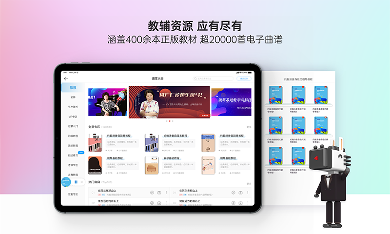 互动社区提供钢琴曲谱、考级教程、视频资料、在线点评、论坛交流等内容,教师地图还能实现与名师零距离教学互动。斑马乐园将深受欢迎的娱乐游戏形式融于练琴中,金币商城也将为所有练琴积累财富的孩子兑现相应的犒赏。