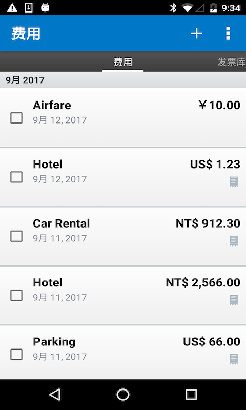 *在飞行模式下或在联网时拍摄发票照片并编辑费用