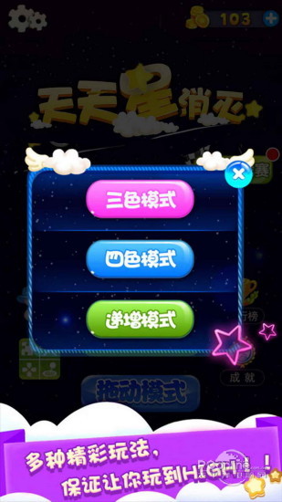 消尽模式:点击单个星星消耗一个開心爆竹,军舰爆竹用尽前需消除更多星星怪兽消消消组合。消除屏幕中的所有弓箭手果冻星星方可过关。三色四色递增模式让你消灭星星开心无限!