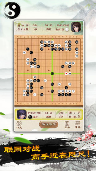 黑白两色,起承转合,变化莫测!惟知万古无同局,黑白轮流日月新。方圆魔域世界,阴阳剑灵两级,经典围棋华丽演绎,指尖对决变化莫测。方寸棋盘酷炫升级,攻守博弈挑战无限。19道纵横脉络, 361个交叉处,攻与防、虚与实、整体与局部错综复杂,让你玩起来眼花缭乱,大呼过瘾!围棋游戏起源于中国古代,相传已有4000多年的历史,和象棋一样,蕴含着中华民族文化的丰富内涵,为“琴棋书画”四艺之一。经典二人对抗性棋类游戏,以其闲情逸致恬淡幽逸的文化和千变万化的围棋宝典棋法而广受青睐。基本规则介绍:开局双方各执一色棋子,黑先白后,交替下棋。棋盘上有纵横各19条直线将棋盘分成361个交叉点,棋子走在交叉点上,如同五子棋。棋子下定后,不得移动。终局数黑白双方占有地(空+子)的多少,多的一方赢。