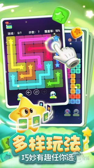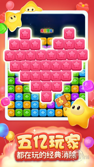 消灭星星系列全新之作!在全新版本中,消灭星星全面升级,画面UI大大提高,更多新玩法全新加入,消除体验全面更新。在经典玩法已经取得了巨大成功的基础上,研发团队新增了多种消除模式。【全新玩法】 与怀旧之作“俄罗斯方块”相结合的拼接消除玩法——星星连萌,通过拖动方块到棋牌中摆满一行或一列后可消除方块,带玩家找回童年的乐趣有增加障碍玩法的闯关玩法——拯救萌星,关卡内有多种不同的障碍元素,增加了游戏的趣味性和难度 更有增加消除难度的完美消除玩法——萌星解谜,关卡内星星摆放成各种不同的可爱造型,造型虽可爱想要消除却需要玩家开动脑筋还有最新加入的连线消除新玩法——连消星星,通过滑动连接关卡内同颜色的星星,在步数和覆盖率的限制下,增加了玩家消除的紧张度和专注度【游戏特点】操作超级简单包体小,不占手机内存,任何手机都可安装玩法简单容易上手,一旦开始,停不下来多种消除模式,多重消除体验