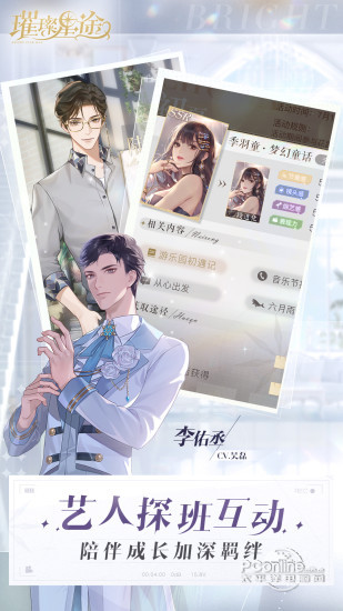 邂逅7位来自不同领域,又性格各异的潜力艺人,你将作为经纪人,参与他们的成长,见证他们的努力与蜕变,互动抉择建立不一样的关系羁绊,在璀璨星途手游官网下载里面发现艺人光鲜背后真实可爱的另一面。