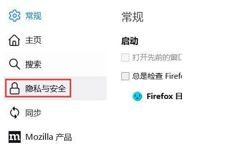 2、随后进入设置界面,点击页面左侧的【隐私与安全】分栏;