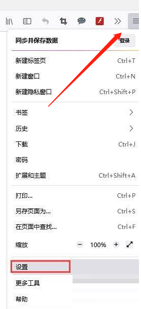 1、打开火狐浏览器,点击主界面右上角的【三】的选项,在列表选项中,找到下方的【设置】;