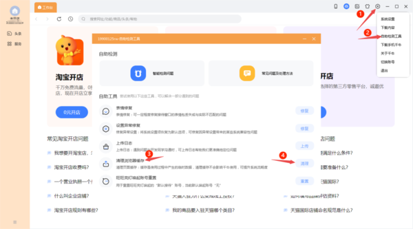 二、点击千牛工作台右上角的【小齿轮】设置图标,选择【自动检查工具】,找到【清理浏览器缓存】选项,最后点击其右侧的【清理】按钮即可。