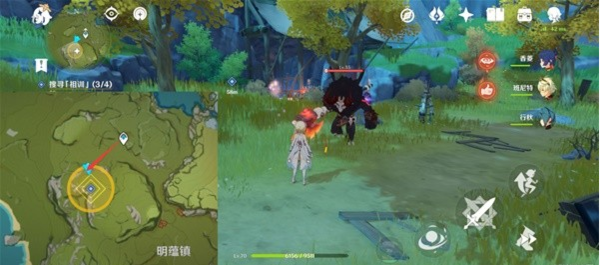 1,玩家要到达明蕴镇的小村庄,与幽灵元鸿进行对话,领取“孤木孑立,无林可依”的任务。可参考下图指引。