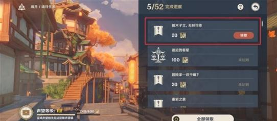 11,当玩家完成“孤木孑立,无林可依”的任务以后,就可以前往“璃月总务司”的干事小雨处,并获得20声望值。