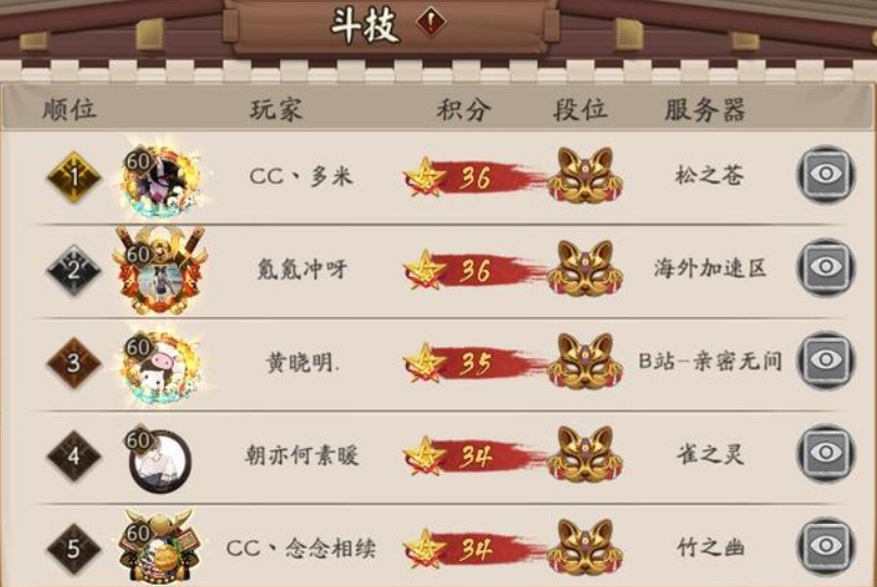 斗技排名会有显示,在斗技的界面点击右上方的排名图标哦。